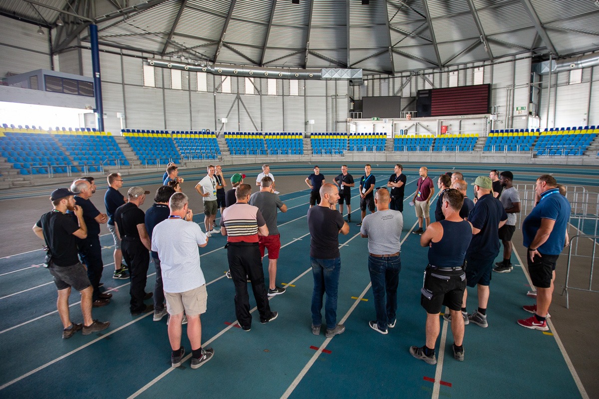 Avant chaque diffusion, toute l'équipe est briefée par le réalisateur. Aujourd'hui, l'événement s'est déroulé au Centre sportif de Flandre, sur la Watersportbaan de Gand.